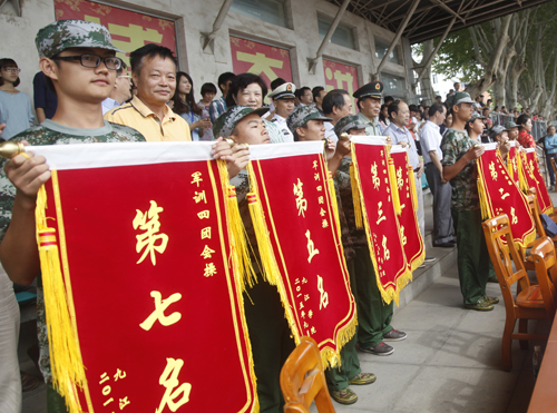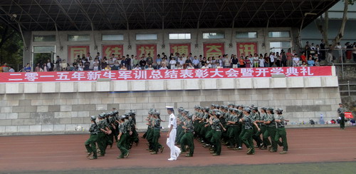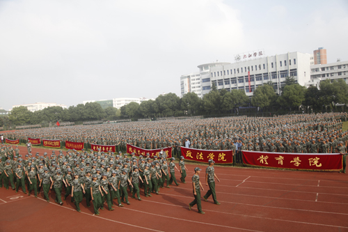 今年我校有万余名新生参加军训。自9月7日开训以来,在时间紧、任务重、天气热的情况下,广大教官以身作则,言传身教,严格要求,精益求精;全体受训同学服从命令,严守纪律,勤学苦练,顽强拼搏,圆满完成了各项训练任务。9天的军训使新生们接受了国防知识教育和军事技能训练,文明素养、组织纪律性、团结协作精神等有了明显的提高,内务卫生等方面取得了明显的进步。