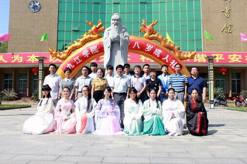 成人礼结束后,参加成人礼的师生们向孔子像三鞠躬。大学生相继拜谢父母养育之恩,表尊敬师长之意,表传承文明报效祖国之心,并排队迈入成人门,在“践行八字真经担当社会责任”的横幅上签名,这也象征着他们开始担负起成年人的责任。