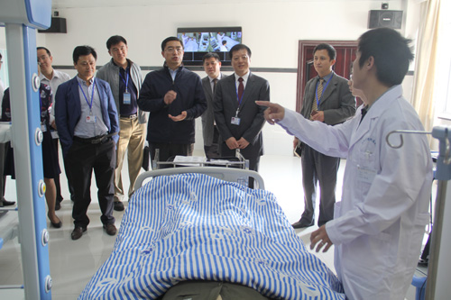 在住院病房,专家组参观了产科示教室,走访了省级重点学科消化内科,与正在开展教学查房的老师和实习生面对面交谈,对实习生轮科计划、出科考核、完整病例书写、社区实习等情况进行了详细的了解。专家组还现场观摩了神经内科聂红兵主任主持的病例讨论,师生互动活跃,问题探讨深入,教与学的效果充分体现。考察中,专家组同时就学院师资队伍建设、教学管理、学生培养、实习考核和教学设备等情况与陶副校长、张院长、教学管理科、教研室等相关人员进行了愉快的交流。