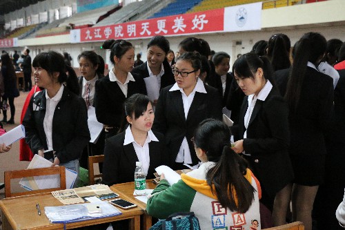 11月7日上午,旅游与国土资源学院2016届毕业生专场招聘会在田径馆馆隆重举行。40余家企事业单位前来招人纳贤,来自我校各个学院和兄弟学校的近千余名毕业生参加了招聘会,学生应聘场面十分火爆。九江电视台等多家媒体对招聘会进行了现场采访报道。