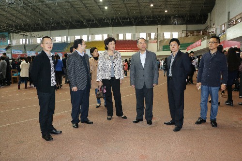 学校领导十分重视此次招聘会,校长甘筱青亲临招聘会现场,副校长吴桃娥及招生与就业处、旅游与国土资源学院负责同志一起陪同看望了用人单位代表和毕业生。