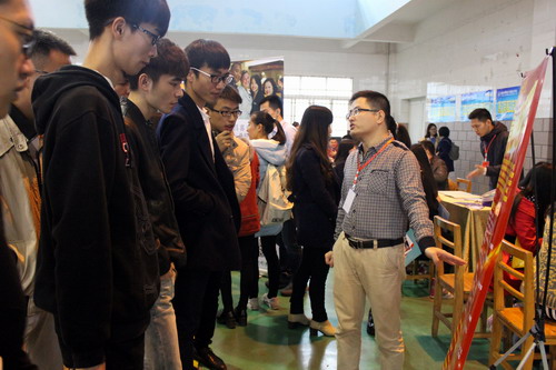 为做好毕业生就业工作,搭建企业与毕业生的交流平台,11月21日,外国语学院在南区体育训练馆举办了2016届外语类专场招聘会。