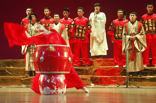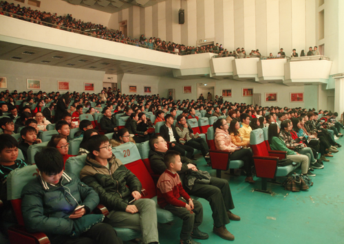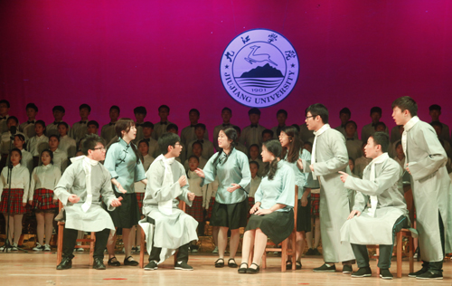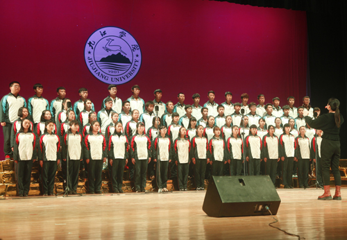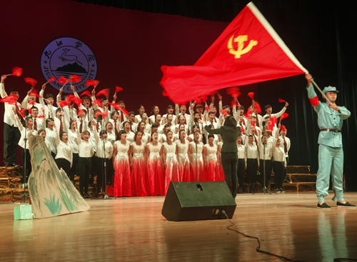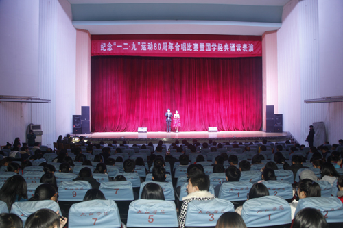 12月9日晚,我校大礼堂歌声嘹亮,座无虚席,以“同抒九院情,共筑中国梦”为主题的纪念“一二·九”运动80周年合唱比赛暨国学经典诵读表演在这里隆重上演。来自全校十余个学院的代表队在这里以歌唱、诵读的形式铭记历史,品味经典。校领导郑翔、纪岗昌、王万山、魏立平、杨耀防与千余名师生代表共同观看了演出。