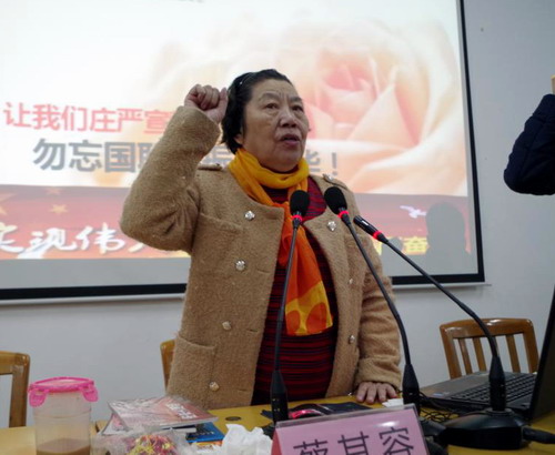 作为抗日战争的亲历者,受害者和见证人,从2010年起,蔡老师以“勿忘国耻,振兴中华,为中华之崛起而读书”为主题义务开展演讲。她的足迹遍及10省23市,我校是她的第349场报告。