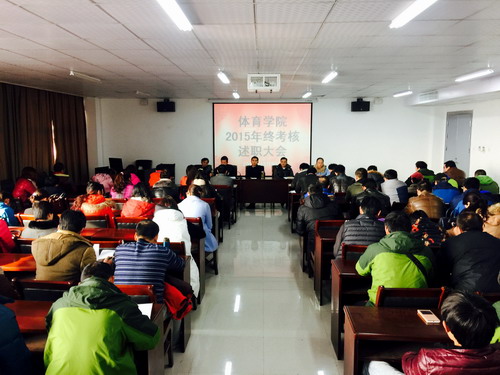 会上,体育学院党委书记张浦强就党的建设、学生安全稳定工作、党风廉政建设、团学工作、运动竞赛和学生管理等方面详细汇报了体育学院在2015年党委各项工作。体育学院院长王勤就教学工作、学科建设、内涵建设、育人工作、运动竞赛、群体活动、场馆管理和服务地方社会经济等方面详细汇报了体育学院在2015年行政方面完成的各项工作。