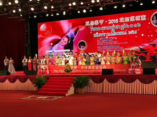 1月21日晚,柬埔寨金边钻石岛歌剧院人头攒动,喜气洋洋,柬各界人士汇聚于此,共同欣赏“欢乐春节•2016欢动柬埔寨”文艺演出,提前感受中国春节的喜庆气氛。“欢乐春节•2016欢动柬埔寨”文艺演出由中国文化部和中国驻柬大使馆主办,柬文化与艺术部和柬国家电视台协办。中国驻柬大使布建国、柬副总理兼总理府部长索安(SOK An)、副总理兼外交国际合作部部长贺南丰(Hor Namhong) 、柬王室成员、政府官员、华侨华人代表及孔子学院师生等约3000人在现场观看了演出。