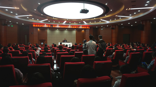 讲座开始前,黎隆武先生讲述了他在九江师专中文系读书时的几个小故事,分享了他对母校的感谢之情。他说,我是九江学院培养的学生,今天回到母校汇报,激动之情难以言表。我至今还记得在母校读书时的事情,感谢母校老师对我的培养和教育,让我终身难忘。他随后起身向在场观众深深鞠了一躬,表达了他对母校领导和老师的真诚谢意,黎副部长的平实而真挚的话语引起了全场师生长时间热烈地掌声。