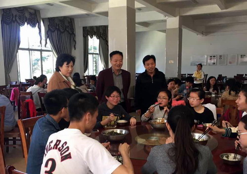 吴副校长和杨副校长还来到学生中间,亲切问候实习学生和带队老师,仔细询问同学们在实训中心的学习和生活情况,希望同学们珍惜这次实习机会,好好学习,并叮嘱同学们在野外实习期间一定要注意安全。