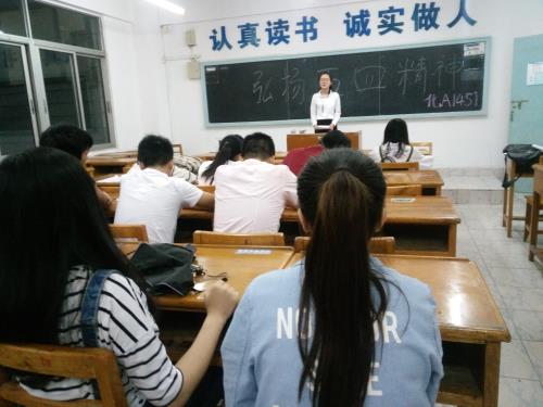 一是把开展纪念“五四”运动97周年系列活动与“中国梦”相结合。学校各级团组织在开展纪念“五四”运动97周年同时,坚持党建+团建,结合大学生党员“两学一做”学习教育,广泛开展了中国梦和中国特色社会主义、以习近平总书记的党中央治国理政新理念新思想新战略、爱国主义、“永远跟党走”、红色基因代代传等系列主题教育活动。会计学院、土建学院、政法学院、文传学院、机材学院、艺术学院等通过新团员入团仪式、学习座谈、交流讨论、参观寻访、故事讲述、知识竞赛等形式,组织团员青年在深刻理解和把握五四精神的基础上,深入学习中国特色社会主义理论体系特别是习近平总书记系列重要讲话精神,增强道路自信、理论自信、制度自信。校学生会、青年志愿者指导中心、学生社团联合会、信息学院、药生学院、化环学院、经管学院、旅游学院、理学院通过开展“五四青春宣言”“向上向善好青年”、“优秀学生代表”、“优秀校友”等分享交流活动,组织优秀学生、青年教师等深入学校、铁路、企业、社区等与各界青年进行了分享交流,引导广大团员青年见贤思齐、崇德向善,从我做起、从身边做起,争做社会主义核心价值观的倡导者、实践者,牢固树立奋斗成就人生的价值观念。