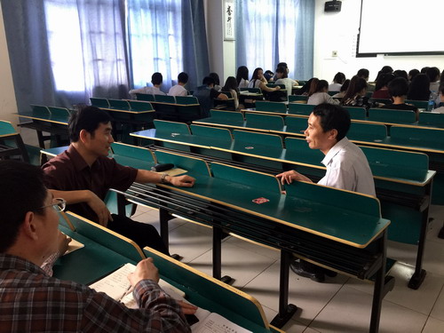 课后,魏书记与陈华老师进行了交流。魏书记认为陈老师授课内容熟练、教态自然、专业知识扎实。同时也对陈老师在如何更好的调动课堂氛围和互动环节上提出了自己的建议和希望。