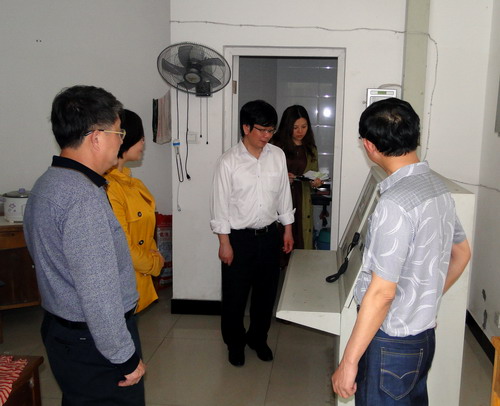 王副校长一行首先来到主校区学生宿舍3栋检查,察看了宿舍的安全设施。他要求宿舍管理部门加强卫生管理,及时清除垃圾,同时要对存在安全隐患的部位及时进行整修。在学生宿舍5栋,王副校长检查了部分宿舍的柜子维修情况,要求尽快维修,并做好宿舍内脱落墙面的维修工作。在学生宿舍5栋的外墙上发现有许多小广告,影响校容校貌,王副校长希望宣传部门加强管理,督促包干部门及时清理,还校园一个整洁的形象。在学生宿舍30栋检查时,王副校长对宿舍卫生表示满意,同时要求宿管部门对楼道里破损的磁砖和已经生锈的楼梯不锈钢扶手及时进行维修和更换,以消除安全隐患。