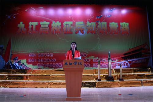 6月1日下午,由九江市军分区主办、九江学院承办的第一届九江高校征兵知识竞赛在我校大礼堂举行。九江市军分区参谋长、市征兵办主任封志宏大校,我校副校长王万山及九江地区7所高校的领导、老师、学生代表共计700余人观摩了竞赛。