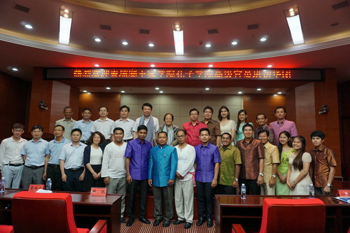 郑翔书记首先代表学校4万名师生对以克洛媞达为团长的代表团一行表示最热烈的欢迎。郑书记简要介绍了我校的基本情况,对中柬源远流长的友谊娓娓道来。他说:“中柬两国友谊深远,儿时看过很多西哈努克亲王的纪录片,印象最深刻的是西哈努克亲王相貌英俊和莫尼克公主美丽端庄的形象,在我们童年印象里,他们就是柬埔寨人民的优秀代表,小时候我们也常常传唱西哈努克亲王创作的歌曲‘怀念中国’,歌曲中流露出中柬两国深厚的友谊。”郑书记指出,三年前他第一次访问柬埔寨,见到了克洛媞达院长,受到了热情接待。正是由于她和柬埔寨各有关方面的支持,孔子学院才能办的有声有色;也正是基于孔子学院发展的良好态势,赢得了国家汉办许琳主任的信任,并由此在美国成功合作承办了第二所孔子学院。美国的孔院尚处于发展起步阶段,规模不大,需要不断向柬埔寨孔子学院学习经验。在此,代表学校对克洛媞达院长及访问团所有成员对柬埔寨孔院工作的支持表示最衷心的感谢。