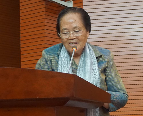 克洛媞达院长对访华团一行受到郑书记的高度重视和热情接待表示诚挚感谢,希望九江学院一如既往支持柬埔寨王家学院孔子学院的发展。她说:“三天前访华团在山东曲阜参观了孔庙,祭拜了孔子,深入了解了孔子的思想和儒家文化,孔子思想的传播不光让中国人民更让世界人民受益匪浅。柬埔寨是佛教国家,由于社会和历史等原因,以前对孔子思想理解有所偏颇,概念不也清晰,但孔子学院的建立和发展真正为孔子思想在柬埔寨的传播奠定了基础,让更多的柬埔寨人民了解了孔子和孔子思想。”她讲话中提到,九江学院赠送了大量书籍给柬埔寨孔子学院,郑书记在致辞中也多次提到了中柬两国源远流长的深厚友谊。柬埔寨每年都会举办研讨会,包括“中柬友好关系溯源”“真腊风土记”等学术研讨会;在出版的相关书籍中也提到了西哈努克亲王和毛主席等老一辈革命领导人成为好朋友、好兄弟的友好关系;为了加强这份兄弟情义,现在柬埔寨人民都在了解中国“一带一路”的构想,都认识到通过“一带一路”的伟大构想可以把两国人民变成真正的好朋友、好兄弟。她还指出,为了让更多的柬埔寨人民了解“一带一路”,每年孔子学院都会通过讲座和研讨会等形式把“一带一路”作为主题进行深入的研究,让两国人民心意相通。她说:“孔子学院虽是教授汉语言为主,但是传播中国文化更为重要,只有良好的沟通和了解才能消除误解、增进友谊、加强合作。目前柬埔寨孔子学院设有25个汉语中心,规模仍在继续扩大。”最后,克洛媞达院长感谢郑书记提供机会让越来越多的柬埔寨孔院学员能来华学习,感谢九江学院领导、老师和学生们支持和帮助柬埔寨留学生,让他们学好本领回国建设家乡。同时她还带来了柬埔寨总理府索安副首相的问候和良好祝愿。