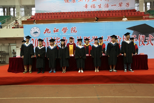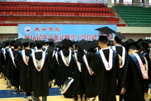 亲爱的2016届毕业生们,九江学院将永远牵挂着你们,母校将时刻祝福着你们,谆谆教诲的师长是你们人生永远的港湾。忆往昔,龙马奔腾壮志凌云奏凯歌已露峥嵘;瞻前程,青春似火众志成城谱新曲再闯雄关!