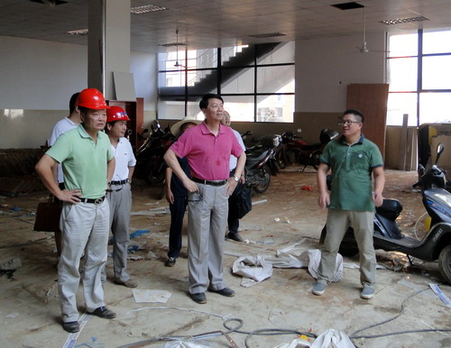 郑书记指出,通过现场察看,虽然因天气等原因工期比计划有所推迟,但总体进度不错,他对此比较满意。郑书记强调,整个暑期,基建处同志大家战高温,斗酷暑,放弃休息,坚守工地,非常不容易,在此向大家表示感谢。