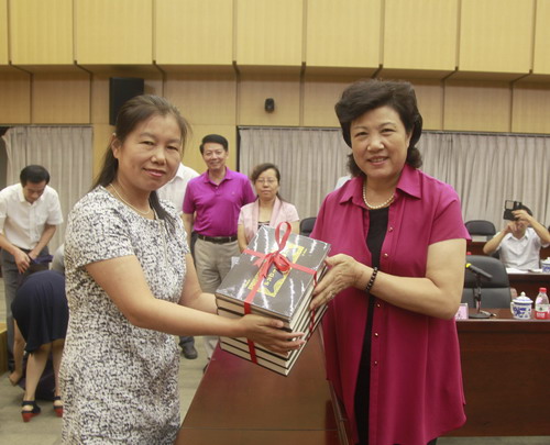 首发仪式上,吴桃娥副校长代表九江学院向国家图书馆及北京大学、清华大学、中国人民大学、北京师范大学四校图书馆负责人赠送了《江西历代进士全传》系列丛书。