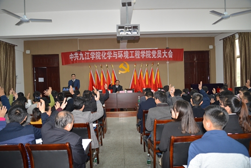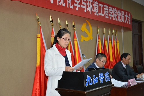 会议审议并通过了《中共化环学院党委工作报告》、《关于九江学院化环学院党委党费收缴、使用和管理情况的报告》以及《中共九江学院化环学院党员大会选举办法》。通过了委员候选人名单与总监票人、监票人名单。根据《中共九江学院化环学院党员大会选举办法》,大会以无记名差额选举的方式,经过全体正式党员投票,选举产生了新一届中共九江学院化环学院委员会委员(以姓氏笔画为序):刘新强、刘小风、孙德四、杨期勇、曹小华。