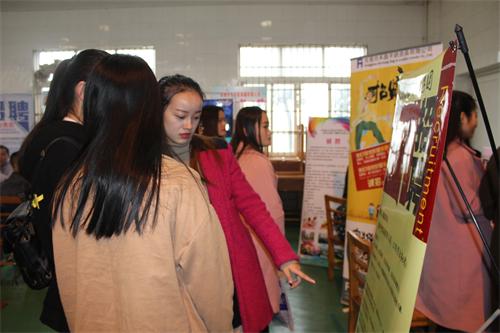 招聘会于上午9:00正式开始,现场气氛良好,秩序井然。每位来应聘的毕业生都带着准备好的简历,在企业展位前详细了解招聘岗位的具体情况,积极地投递简历并与招聘人员交流。在招聘现场,有的用人单位制作精美宣传海报、有的在现场播放企业宣传片、有的则主动向应聘学生介绍企业情况。此次招聘会有多家企业是外国语学院和电子商务学院长期合作单位,他们对九江学院的毕业生非常满意,我校毕业生在专业知识、职业技能、思想道德品质等方面均得到了用人单位的认可,公司负责人表示,希望与九江学院建立长期稳定的校企合作关系。