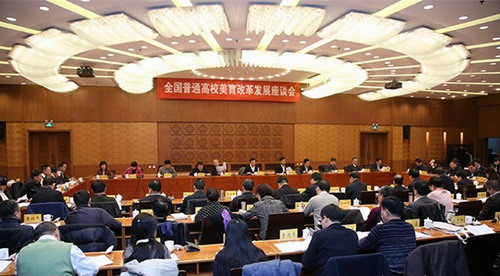 座谈会上,郝平指出,“举精神之旗、立精神支柱、建精神家园”既是时代赋予学校美育的历史使命,也是学校美育自身的不懈追求。在新的历史时期,美育承担着更多的历史使命和功能,加强和改进普通高校美育工作,不仅是全面推进学校美育改革发展的需要,也是全面提高大学生人才培养质量的需要。作为教育综合改革和文化体制改革重要的交汇点,高校美育的改革既要面向全体学生遵循美育教育教学的规律,培养全面发展的人,也要遵循文化发展的规律和艺术专业人才成长的规律,培养适应时代需要的、复合型的、创新型的、应用型的各个层次的艺术专业人才。要以立德树人为根本宗旨,强化高校美育的育人功能,公共艺术教育要确保面向人人,切实提高大学生的审美和人文素养,要进一步优化普通高校艺术专业学科布局,努力探索构建多元化、特色化、高水平,具有中国风格的艺术学科体系,艺术师范教育要深化课程改革,培养满足基础教育需要的美育教育。