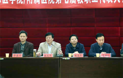 最是一年春好处,春光无限催人进。3月10日上午,临床医学院/附属医院第七届四次教职工代表大会在庐峰校区大礼堂隆重召开。杨焱林副校长出席,临床医学院/附属医院班子、职工代表、列席代表、教职工、学生代表等1000余人参加了大会。会议由该院党委书记张南华主持。