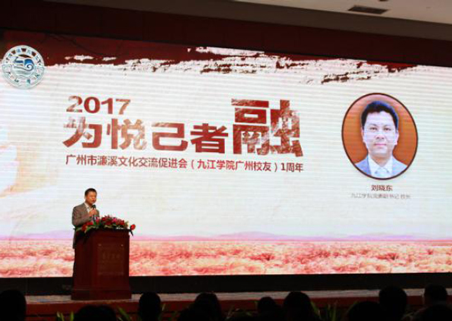 刘校长在致辞中向各位与会校友介绍了母校近年来建设和发展情况。刘校长说,校友是学校最重要的办学资源之一。大学期间,你们在母校度过了美好的青春岁月。毕业后你们是母校的名片,是母校最直接的形象品牌。如今你们在各自的舞台上创造的业绩,为母校赢得了赞誉,我们将铭记你们对母校的一片深情。广州市濂溪文化交流促进会(九江学院校友)是我校第一个正式注册的校友组织,对各省市建立校友组织起了一个很好的榜样作用。母校永远牵挂着校友,关注着校友的成长,欢迎校友们回母校看看。