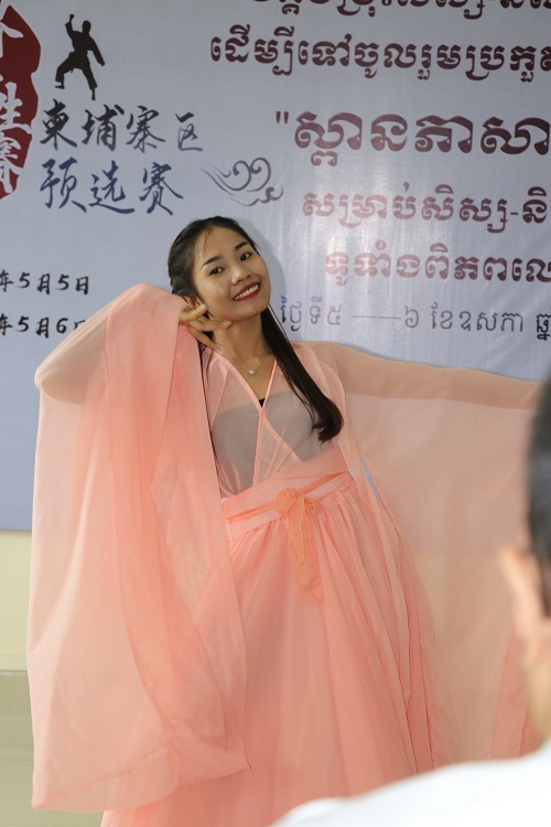 选手们演讲声情并茂,而才艺表演同样精彩纷呈,唱歌、朗诵、相声、快板、舞蹈、书法绘画、吹笛、武术等中华才艺表演将现场气氛一次又一次地推向高潮。金边皇家大学的苏树佳用柔软的身段呈现了男士傣族舞的刚柔之美;王妮达一支优雅动人的《礼仪之邦》赢得现场掌声不断;亚欧大学的纪智德一纸惟妙惟肖的竹叶画获得现场好评连连。