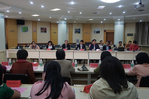 5月12日下午,学校在行政楼1号会议室举行了访华团欢迎仪式。校长刘晓东教授、副校长杨耀防教授、柬埔寨王家研究院院长克洛堤达(KHLOT THYDA)院士、国际交流学院负责人帅式毅、文传学院院长吴国富、旅游学院副院长孙冬英、柬埔寨王家研究院孔子学院官员班学员访华团全体成员、我校柬埔寨留学生共50余人参加了欢迎仪式。欢迎仪式由杨耀防副校长主持。