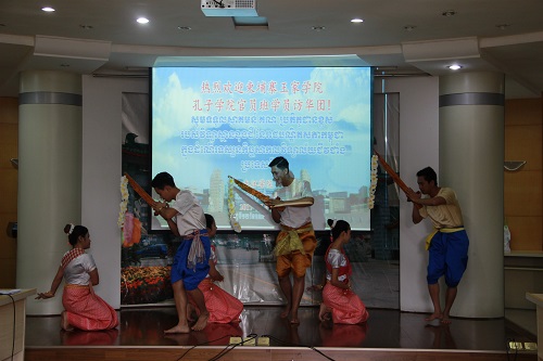 仪式结束前,6名柬埔寨孔子学院奖学金学生为全体嘉宾带来了一支柬埔寨传统舞蹈,为大家展示了柬埔寨的历史风情,促进了我校师生对柬埔寨文化的了解。