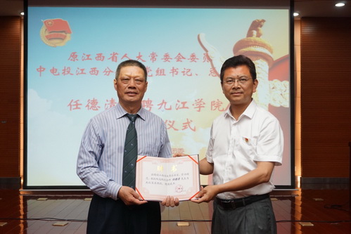 大师治校、专家治校、名师治校是中国高等教育发展的大趋势,聘请校外专家、企业精英为客座教授,是学校大力实施人才强校战略的一项重要举措。5月22日下午,九江学院举行客座教授聘任仪式暨学术报告会,聘请原江西省人大常委会委员、中电投江西分公司党组书记、总经理任德清担任我校客座教授。出席授聘仪式暨学术报告会的有九江学院校长刘晓东,江西梧桐教育集团董事长罗文,江西梧桐书院杨万顺副院长,九江学院学生处、组织人事部、校团委等相关单位的负责同志和代表。聘任仪式暨学术报告会由校团委书记闫来英主持。