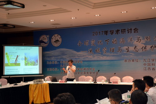 5月20-21日,由中国海洋湖沼学会、九江学院主办,九江学院鄱阳湖生态经济研究中心承办的“全球变化下的海洋与湖泊——流域管理与生态保护2017年学术研讨会”分别在主校区逸夫图书馆学术报告厅和九江宾馆举行。在全球变化的背景下,加强海洋湖泊流域管理与生态保护成为日益紧迫的重要课题,本次会议旨在增强流域综合管理和流域生态保护领域的合作与交流,推进鄱阳湖流域的可持续发展研究。本次学术活动分大会主题报告、大会分报告和科研基地考察三个阶段。