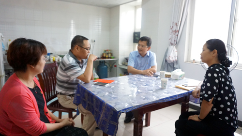 在困难党员教师文传学院李立广老师家里,刘校长详细了解了李老师的情况,对李老师在家庭存在困难的情况下,仍坚持高质量地完成学院的各项工作,并努力提升自己的学业非常感动,他鼓励李老师能尽快完成博士学业,积极面对目前在生活、工作以及学习中的困难,他还希望文传学院给予李老师更多的关怀。