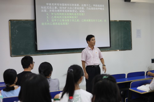 “法律专业学习有难度,各种法律条款非常多,但你们的李仲文老师能把比较枯燥生涩的概念讲得很生动,上课保持激情的同时,还能够结合自己的法律实践,所以做到了深入浅出。”“在国家高速发展的大背景下,学好法律很有必要。除了专业知识的提升,更重要的是在这个过程中培养出来的思维能力将让你们终生受益。”在综合楼409教室听完《民法学Ⅱ》课后,魏副书记的点评引起了同学们的共鸣与会心的笑容。