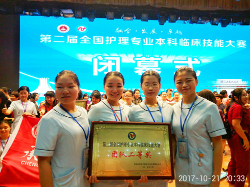 10月21日,第二届全国护理专业本科临床护理技能大赛在广西南宁圆满落幕。我校护理学院韩斗玲、邹敏、赖雪花三位老师指导的4名参赛选手A1411班徐可意、敖舒悦、欧阳婷和A1412班徐梦,在此次比赛中脱颖而出,取得优异成绩,荣获大赛团队二等奖,位居全省本科院校榜首。