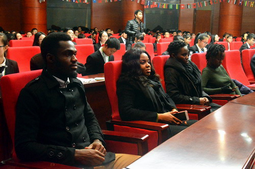 11月30日,由校团委主办的第一届模拟联合国大会开幕式在我校逸夫报告厅举办。校党委副书记魏立平出席开幕式并讲话。学生处、校团委、外国语学院负责人及19支代表队和留学生代表、外语爱好者共计200余人参加了开幕式。