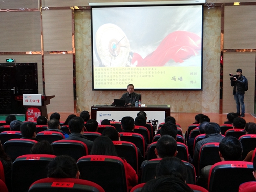12月22日上午,学校12月份校党委中心组(扩大)学习会暨164期濂溪讲坛在香远楼报告厅隆重举行。十九大代表、教育部十九大精神宣讲团成员、首都经贸大学党委书记冯培教授做了题为《胜于无形—中国特色社会主义大学文化的挑战和构建》的精彩报告。在家校领导赵伟、刘晓东、魏立平、王万山、夏启国、查振华出席报告会。学校副科以上干部、各民主党派负责人、知联会、留联会负责人、党支部书记、党建组织员及学生代表共计500余人到场聆听了报告。报告会由我校党委书记赵伟同志主持。