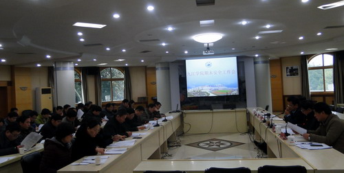 学生处长刘平对期末学生工作作了安排。保卫处处长张晓明就加强师生安全教育,做好突发事件的应急处置和信息通报,确保生命财产安全和校园安全作了安排。