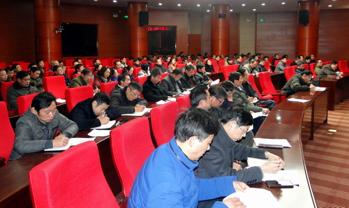 1月11日下午,学校在逸夫图书馆学术报告厅召开期末工作布置会。校领导赵伟、刘晓东、魏立平、纪岗昌、王万山、陈春生、杨耀防、夏启国、查振华出席会议,校党委副书记魏立平主持会议,各单位各部门副处以上干部参加了会议。