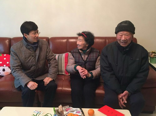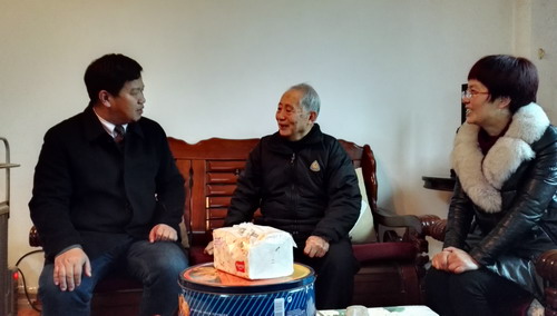 在2018年新春佳节即将来临之际,学校开展了新春走访慰问离退休老同志和困难教职工活动。校党委书记赵伟,校长刘晓东,校党委副书记魏立平,副校长纪岗昌、王万山、陈春生、杨耀防、夏启国、查振华在党院办、组织人事部、离退休职工管理处、宣传部、工会、浔东校区管理办公室、医学部有关人员的陪同下,走访了全校离休干部、副厅级以上干部、原四校区校级领导及部分特难党员、困难教职工,为他们送去新春祝福,带去节日问候。
