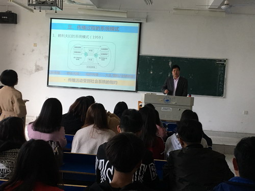 在文友楼301教室,文传学院魏端端老师详细讲解了传播过程中的循环互动模式,重点介绍了香农信息论及奥古斯德与施拉姆循环模式的传播特点。同学们认真听讲,积极和老师互动,课堂教学效果良好。