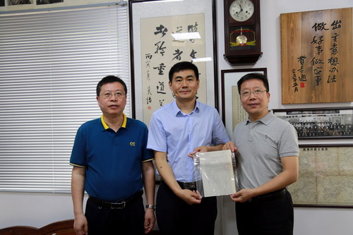 在参观基地期间,迟云平代表基地把收藏的一份1957年2月九江民盟珍贵史料原件馈赠给民盟九江市委员会。