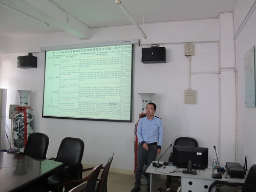 汇报会上,纪岗昌副校长简要介绍了本次督查工作的目的,他要求大家要坚决贯彻学校关于本科审核评估的部署,严格按照学校评估办的工作要求,争取在评估中取得优异成绩。实验中心黄冬久副主任介绍了整个督查过程的工作程序,督查工作小组将按照听取汇报、访谈学院主要负责人、查阅教学资料、听课看课及走访专家考察路线等部分依次进行。