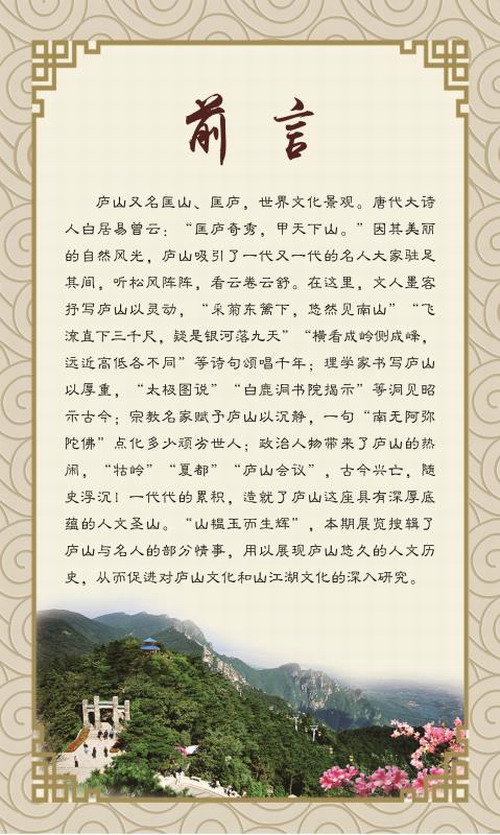本期“名人与庐山”展览搜辑了30多位与庐山有关的名人的部分情事,用以展现庐山悠久的人文历史,熏陶学生人文素养,促进对庐山文化和山江湖文化的深入研究。