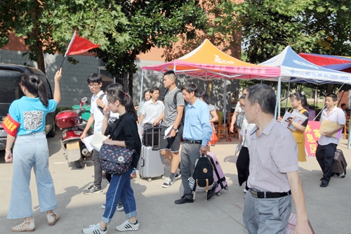 “高效、热情、服务、周到”的迎新工作 令新生及其家长感到方便和温暖,我们看到的是一张张略带倦意的脸庞以及倦意背后舒心的笑容。“我们一下车,就看到了咱们学校接站的牌子,受到热情的接待,从办理报到手续到找到学生宿舍,都是一位同学帮着给办好的,真是太方便了,服务真是太周到了!”一位从贵州过来的学生家长如是说。在报到现场,记者时刻都能看到师生们忙碌的身影,他们帮贫困学生咨询,给新生指路,帮助提行李,一次次奔波在报名点和学生公寓楼之间,尽管汗流浃背,但他们的脸上始终充满着灿烂的笑容。
