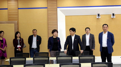 李广欣书记还在韩琨院长、杨杰书记等班子成员的陪同下到外国语学院党员活动室、同声传译室、外语教学情景中心、教工之家、审核评估资料室、博士工作站等实地调研,并与班子成员进行了交流。