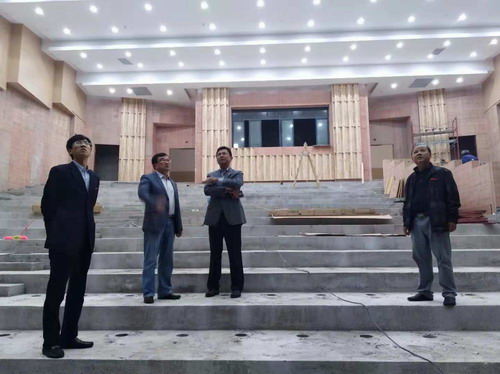 下午,校长刘晓东、副校长查振华在校扶贫点武宁东山村视察工作后一到学校,就来到艺术学院排练厅看望王永吉先生,并观看了王永吉先生为乐团排练情况。刘校长与王先生进行了亲切交流。他代表学校感谢王永吉先生对九江交响乐团建设的鼎力支持和精心指导,并希望交响乐团的老师和同学们要珍惜难得的学习机会,在王先生的悉心指导下,刻苦排演,进一步提高演奏水平,确保九江交响乐团元旦首场音乐会充分体现九江学院的水平、充分体现九江市的水平!之后,刘校长还察看了艺术学院音乐厅的建设情况,要求抓紧时间、加强督促、保证质量,确保教育部专家进校评估前投入使用。