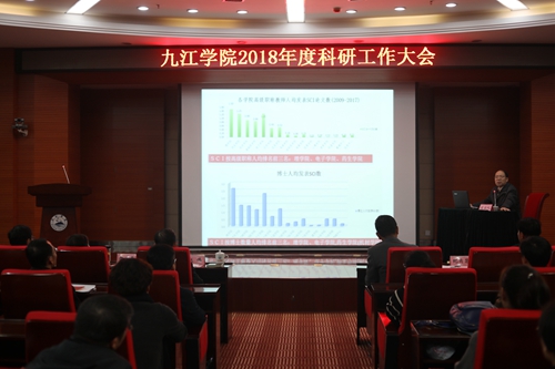 会上,副校长纪岗昌从“科研成果统计分析”和“科研项目与经费”两个方面对我校的科研工作进行了总结。
