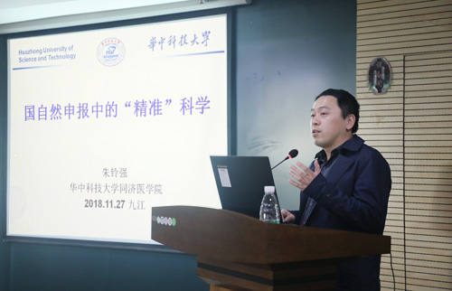 讲座在庐峰校区行政楼四楼会议室进行,朱铃强教授以“国自然申报中的精准科学”为题,分享了国自然申报中“紧抓热点、吃透指南、打好基础、精心撰写”等几点心得,并结合亲身经历就国自然基金申报中遇见的一些细节问题进行的讲述。讲座现场气氛活跃,朱教授深入浅出的讲解引发了大家的积极思考。在现场交流环节中,多位参会者就自己的申报情况与朱教授进行了探讨。