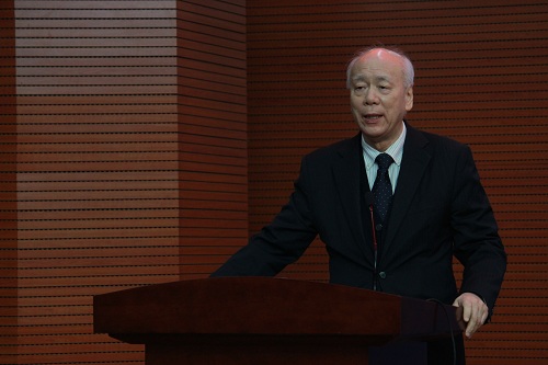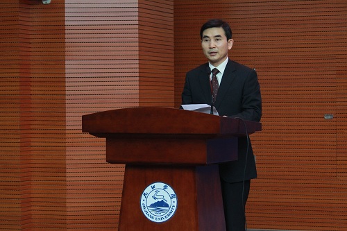 华大使对模联协会的成立表示祝贺,向大会主席授锤并致辞。华黎明表示,世界需要青年的声音,模联让青年有机会感受到联合国多边舞台的精彩,鼓舞着青年为建设人类社会的持久和平、促进世界的和谐与繁荣前赴后继。华大使寄语我校青年,今天你们 model UN,明天你们manage UN。
