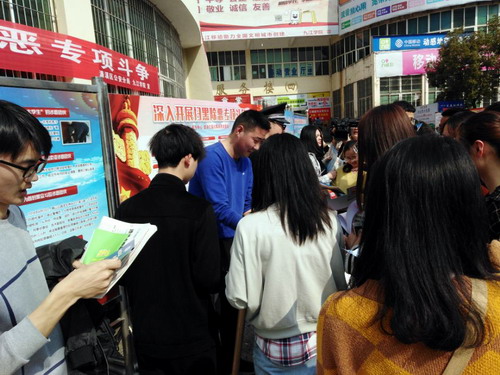 3月25日上午,为深入推进学校扫黑除恶专项斗争的开展,进一步强化师生对开展扫黑除恶专项斗争的认识,学校会同九江市濂溪区公安分局在学生三食堂广场举办了扫黑除恶专项斗争工作宣传活动。